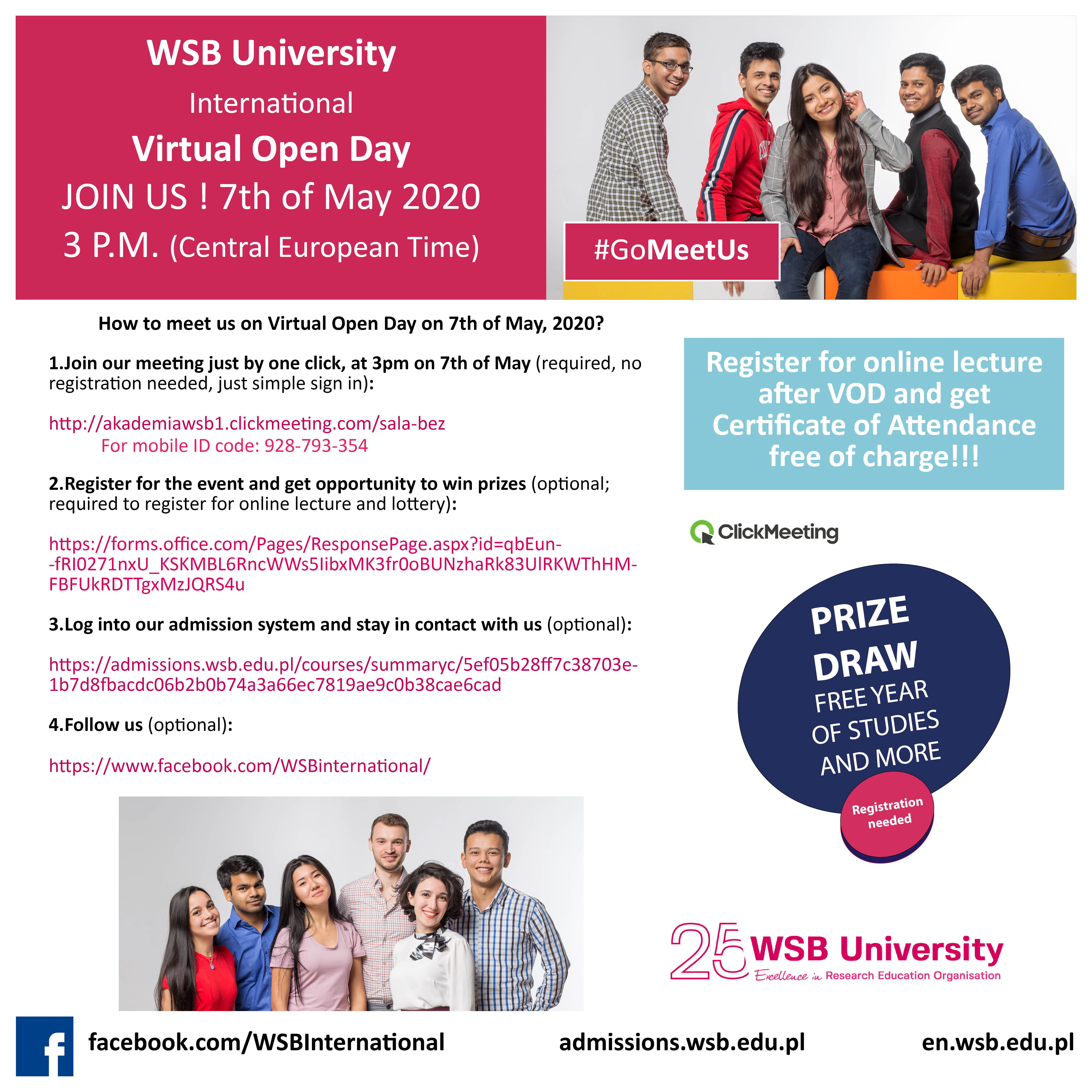 La cellule de la coopération et des relations extérieures a l’honneur et le plaisir de vous inviter à la journée virtuelle ouverte organisée par l’université polonaise internationale WSB University.
